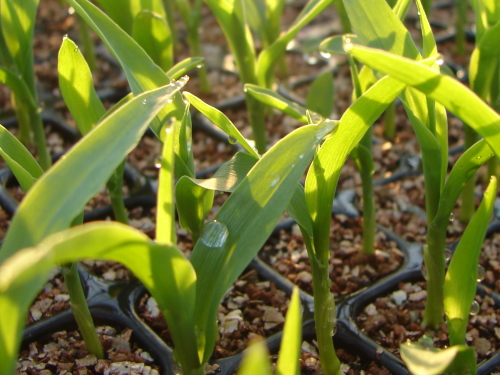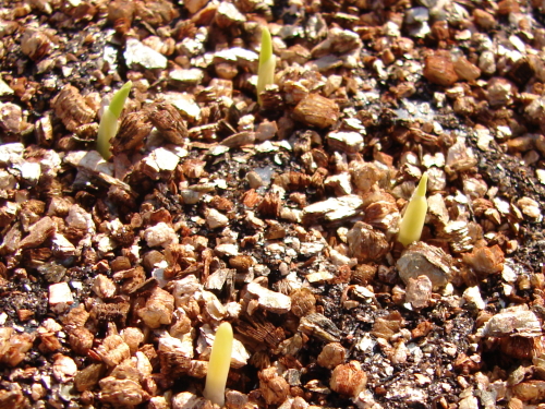 とうもろこしの芽が出るときは、鞘葉と呼ばれる葉が先に出てその中から葉っぱが出てきます。