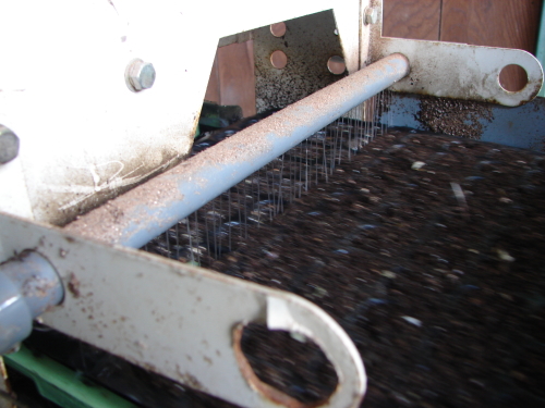 この器具はキャベツなどのコート種子をまく器具ですが、とうもろこしの種が入るように種の入る穴を大きく改造してあります。