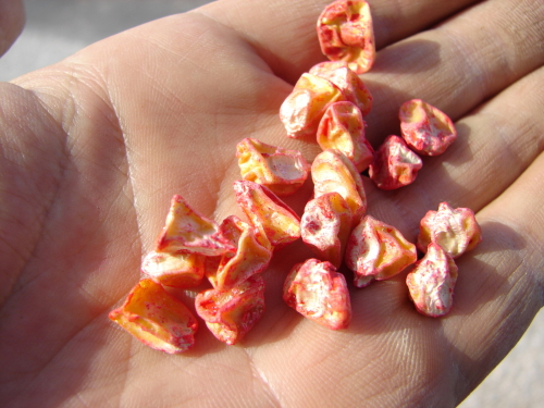 とうもろこしの種は形や大きさもさまざまなので穴に3つ入ったり1つも入らなかったりします。