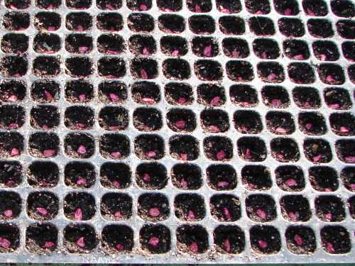 1つの穴に1つの種になるように手やピンセットで直します。 |