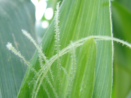 この雌しべの1本1本はとうもろこしの粒1粒1粒へとつながっています。