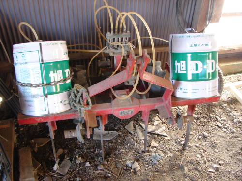 (だいぶ前に畦立て同時消毒用に買いましたが、今では、改造してキャベツの中耕に使っています)