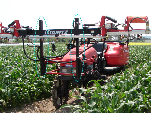 (高かったけど買ってしまいました(3●0万します) とうもろこしを消毒する時は、背の高いとうもろこしの木の上から消毒できるように改造してあります) |